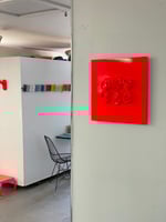 a six pack i drank, crushed and mounted to an aluminum panel and then powder coated marfa red