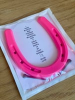 a mid-size mule shoe i sandblasted and powder coated in fluorescent "sassy" pink